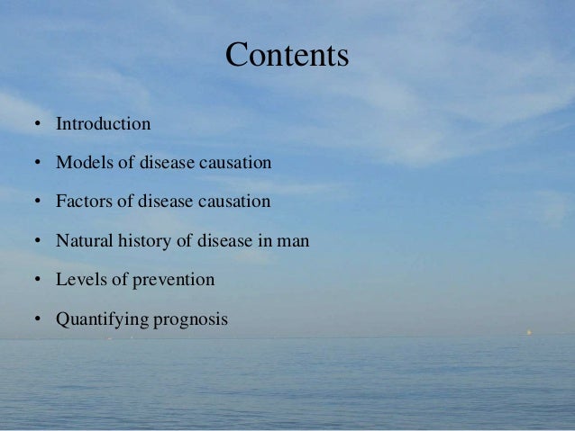 - 2. Contents • Introduction • Models of disease causation • Factors of disease causation • Natural history of disease in man • Levels of prevention • Quantifying prognosis