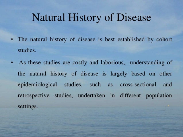 - 6. Natural History of Disease • The natural history of disease is best established by cohort studies. • As these studies are costly and laborious, understanding of the natural history of disease is largely based on other epidemiological studies, such as cross-sectional and retrospective studies, undertaken in different population settings.