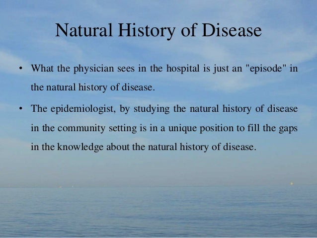 - 7. Natural History of Disease • What the physician sees in the hospital is just an “episode” in the natural history of disease. • The epidemiologist, by studying the natural history of disease in the community setting is in a unique position to fill the gaps in the knowledge about the natural history of disease.